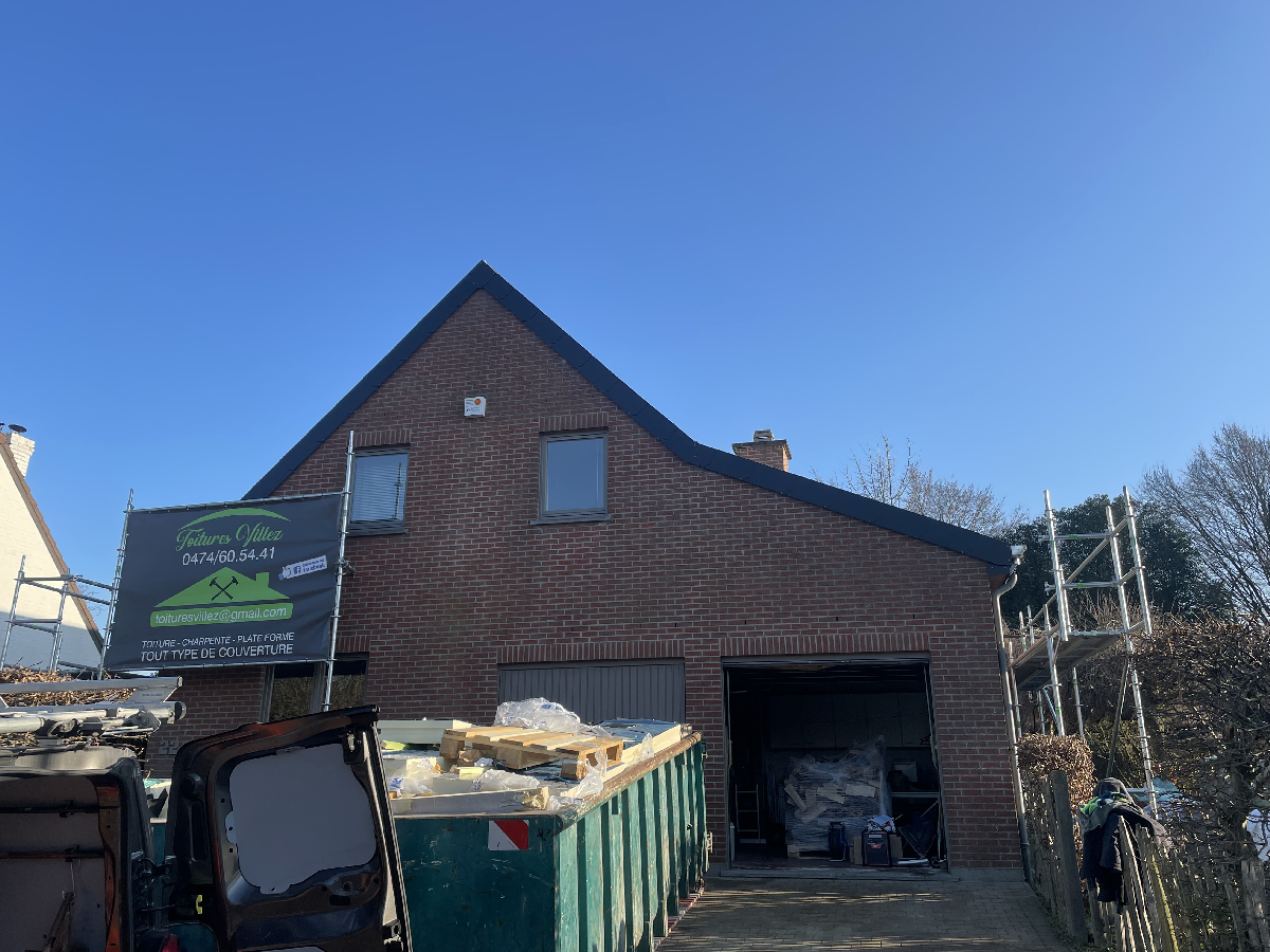 Toitures Villez propose depuis plusieurs années des services complets de couverture aux résidents de la province de Namur (Floreffe, etc.). Son équipe de couvreurs zingueurs charpentiers hautement qualifiés et expérimentés est outillée pour gérer des projets de toutes tailles et de toutes complexités. Qu'il s'agisse d'une construction, d'un placement ou d'une rénovation de toiture (toiture plate, toiture en ardoise, etc.), l'entreprise a les connaissances et l'expertise nécessaires pour obtenir des résultats exceptionnels. Ses services de pose de charpente et de nouvelle toiture sont pensés pour restaurer la fonctionnalité et l'esthétique de votre propriété. Pour l'isolation de toiture, l'aménagement de grenier et la modification de charpente, elle évalue minutieusement l'état de votre couverture et propose des solutions personnalisées pour résoudre tous les problèmes auxquels vous êtes confrontés. Ses artisans qualifiés utilisent les techniques les plus récentes et des matériaux de haute qualité pour garantir des résultats durables. Vous pouvez ainsi compter sur eux pour vos travaux de zinguerie, d'isolation et étanchéité de toit, de nettoyage de corniche et gouttière, de pose de fenêtre de toit, d'aménagement de combles, de modification de charpente, de pose de membrane EPM. Besoin d'un expert pour installer votre toiture en ardoise ou votre toiture en tuiles ? Appelez Toitures Villez et demandez votre devis personnalisé.
